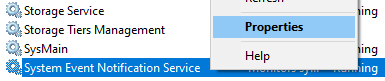 5. Next, right-click on System Event Notification Service again and choose Properties.